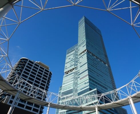 地上100mの展望塔。5階部分が展望台で、足の裏をなでると幸運が訪れるといういい伝えの「ビリケン」像が鎮座されています。夜になるとライトアップされ翌日の天気を知らせるネオンサインも点灯します。