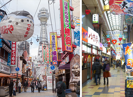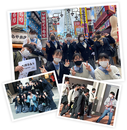 吉本興業に所属する若手芸人がナビゲーターとなり、大阪の街歩きを実施。面白おかしく交流しながら同行観光し大阪の魅力を発信・紹介するもので、このプログラムに参加した中高生は「笑い」を通じて魅力のある大阪を知り、そのフィールドワークの前後でなんばグランド花月を観劇いただく構成となっています。 ※注:「大阪B&Sプログラムwithよしもと」は、なんばグランド花月の観劇とセットプランの販売になります。